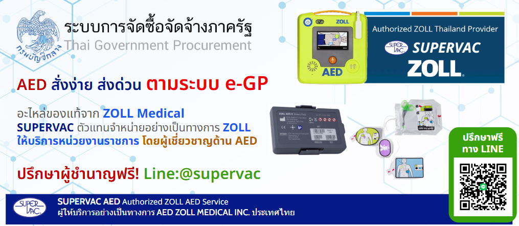 - ผู้จำหน่ายมีหนังสือรับรองอุปกรณ์ของแท้จาก ZOLL